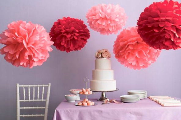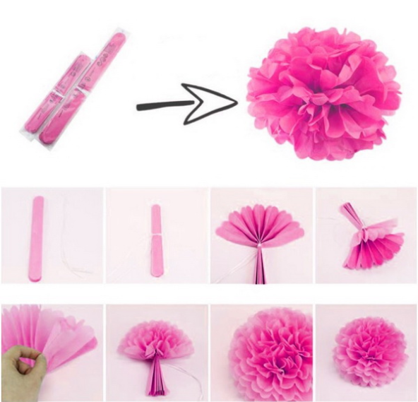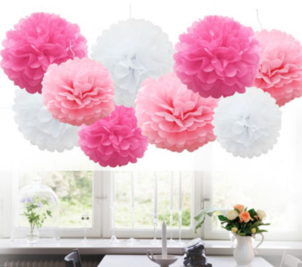 34907 Pompony Z Bibuły Kula ŚLUB kolory 15 CM urodziny