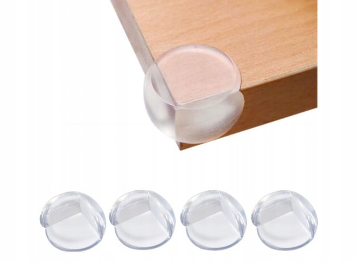 Elastyczne narożniki silikonowe pozwalają na zabezpieczenie narożników blatów, stołów, szafek, schodów i innych przedmiotów, dzięki czemu Twoje pociechy są bezpieczne i nie uderzą się o twardy narożnik np. stołu.W zestawie 4 szt. narożników oraz specjalne kółeczka samoprzylepne z mocnym klejem. Silikon można wycierać wilgotną szmatką, dzięki czemu narożniki są łatwe do utrzymania w czystości. Narożniki są wodoodporne i elastyczne, należy je przyklejać na suchą, czystą i odtłuszczoną powierzchnię.