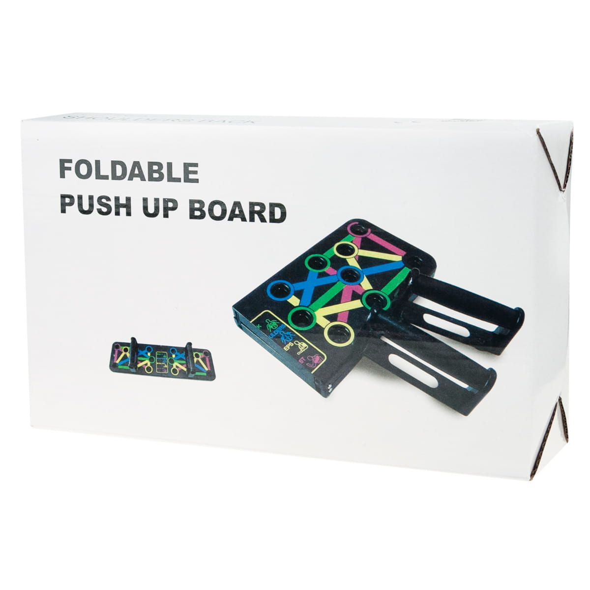 WIELOFUNKCYJNA DESKA DO POMPEK 14w1 Z SOLIDNYMI UCHWYTAMI I ANTYPOŚLIZGOWYMI NAKŁADKAMI CECHY PRODUKTU: wiele kombinacji ułożeń uchwytów praktyczne uzupełnienie treningów dostosowany do treningów w pomieszczeniach oraz na zewnątrz solidna konstrukcja antypoślizgowe podkładki składana budowa SPECYFIKACJA: zastosowanie: treningi siłowe, crossfit, fitness budowa: składana wymiary deski: 63cm x 18,5cm wymiary uchwytów: 17cm x 7,5cm materiał wykonania: tworzywo sztuczne oraz antypoślizgowe elementy Deska do pompek 14w1 to perfekcyjne uzupełnienie domowego arsenału sprzętu do ćwiczeń. Dzięki specjalnemu systemowi "Plug & Press" można zastosować wiele różnych kombinacji podparcia, z których każde angażuje poszczególne partie mięśni. Wszystkie kombinacje są bardzo czytelnie przedstawione na desce i można błyskawicznie dostosować ułożenie do treningu w danym dniu. Jest to profesjonalny sprzęt treningowy. Wykorzystaj go w domu lub zabierz na siłownię lub trening outdoorowy. Deska posiada składaną strukturę oraz jest lekka, przez co można ją bezproblemowo przechowywać w domu lub zabrać ze sobą w podróż np. na urlop, jeżeli nie chce się ominąć swoich dni treningowych. Produkt wykonany jest z bardzo wytrzymałego tworzywa sztucznego, które wytrzyma ciężar osoby ważącej do 130kg. Od spodu znajdują się specjalne gumowe nakładki, które zapobiegają ślizganiu się deski po podłodze podczas treningu. Nasza deska pomoże Ci w świadomy sposób zaangażować wybrane partie mięśni podczas treningu. Wybierz mięśnie, na które chcesz nałożyć większy nacisk i dopasuj ułożenie uchwytów pod odpowiedni kolor linii na desce. Dostępne kombinacje to: kolor czerwony: mięśnie dolne i górne klatki piersiowej kolor żółty: tricepsy kolor niebieski: mięśnie przednie, tylne i boczne barków kolor zielony: mięsień najszerszy grzbietu oraz czworoboczny ZESTAW ZAWIERA deskę do pompek push up board 2x uchwyty do pompek 8x wypustek antypoślizgowych oryginalne opakowanie