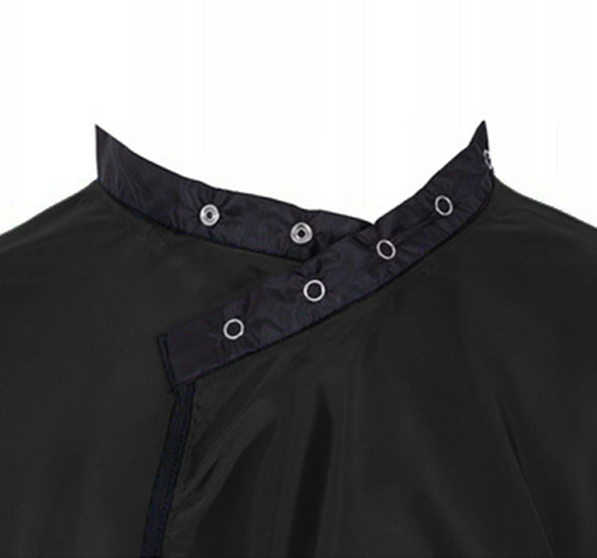 Długa i wygodna peleryna fryzjerska, fartuch do strzyżenia. Przedmiot stanowiący niezbędne wyposażenie każdego profesjonalnego salonu fryzjerskiego oraz do strzyżenia w domu! Wykonany z wytrzymałego i oddychającego nylonu, posiada niekrępujące ruchów szyi zapięcie na napy. Łatwa w składaniu i przechowywaniu. Można ją bezpiecznie uprać w pralce.