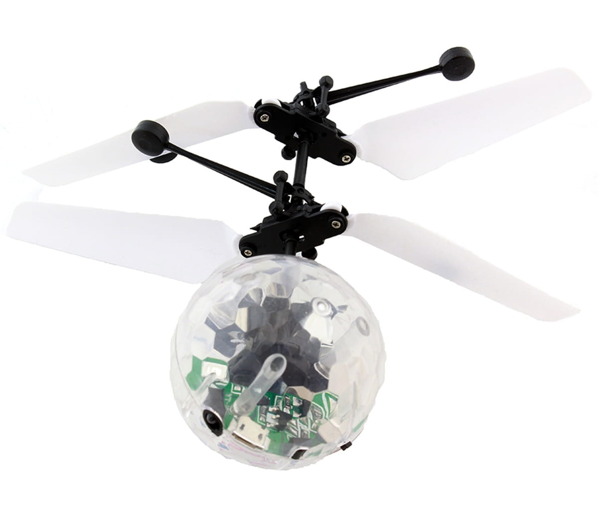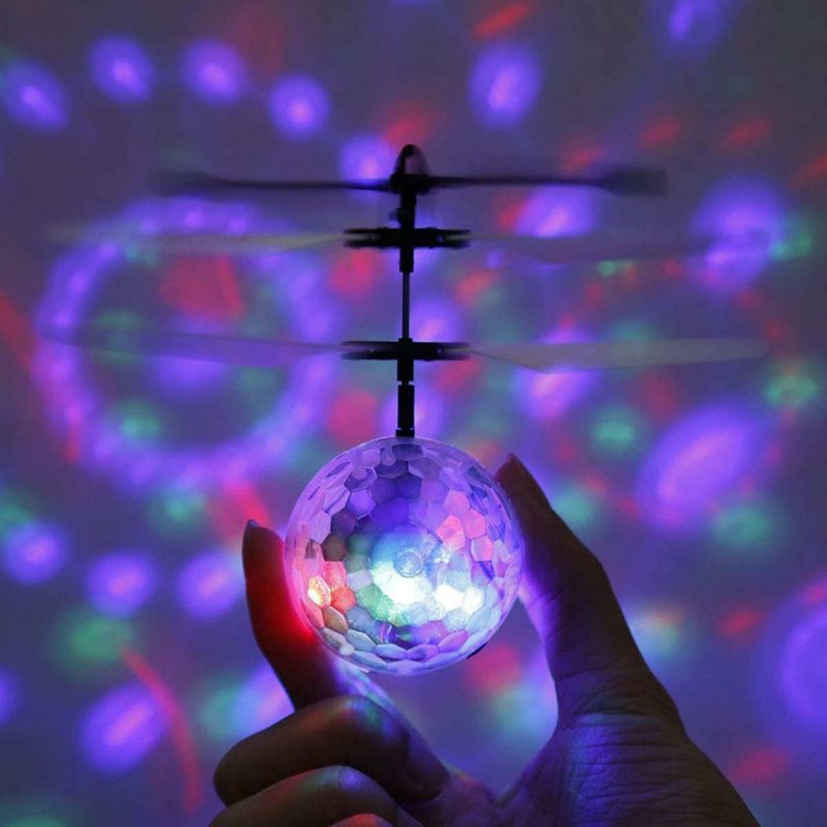Latający spodek (UFO) z wbudowanym czujnikiem wysokości. Świetny gadżet i zabawka dla każdej grupy wiekowej :) Wyposażony w migająca kulę dyskotekową z kolorowymi diodami LED! Zapewnia to niesamowity efekt wizualny w przyciemnionych miejscach i sprawi dużo radości podczas zabawy. Produkt wyposażony został we wbudowany akumulator, co gwarantuje około 8 minut lotu na każde pół godziny ładowania.