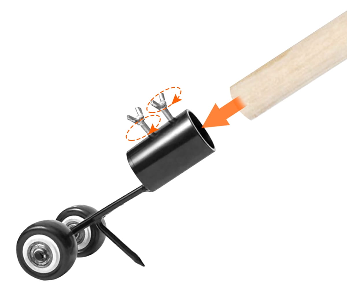 Uniwersalny skrobak na kółkach, przeznaczony do usuwania trawy i chwastów z bruku. Ostry szpikulec doskonale wyrywa niechciane chwasty z fug i szczelin pomiędzy kostką brukową. Solidne mocowanie na śruby umożliwia zatwierdzenie skrobaka do standardowych narzędzi ogrodniczych lub kija.