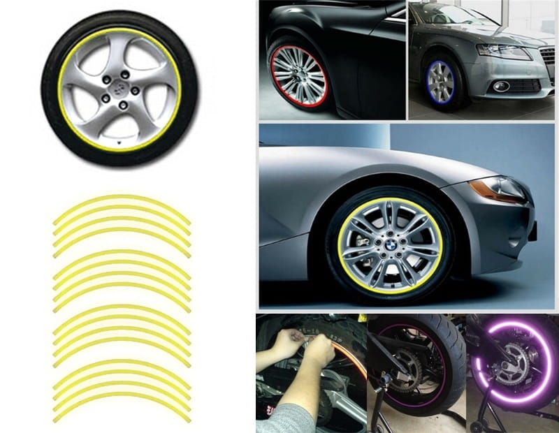 Naklejki odblaskowe na koła opony samochodu czy motoru. Poprawiają widoczność i bezpieczeństwo na drodze, tworząc przy okazji niesamowity efekt, szczególnie w nocy.