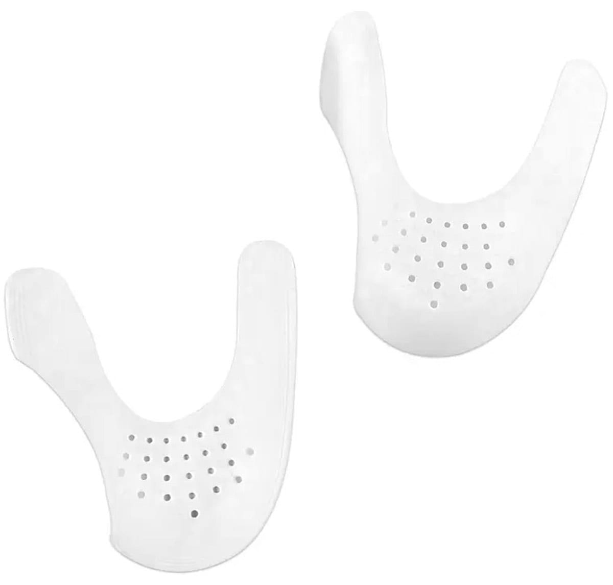 Usztywniacze do czubków butów sportowych. Skutecznie likwidują pomarszczone noski i wygładzają zagięcia na froncie buta. Wkładka zwiększa żywotność obuwia, a specjalne otwory wentylacyjne umożliwiają oddychanie stopy. Antypoślizgowe punkty zapobiegają przesuwaniu się wkładek podczas chodzenia.