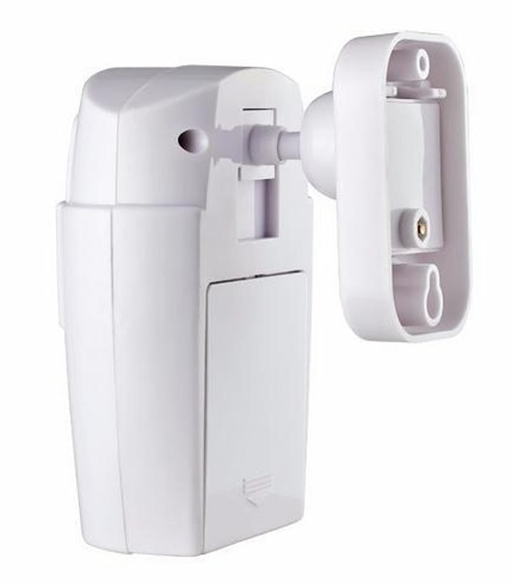 • Sensor wykrywa najmniejszy ruch w zakresie 110 stopni. Zasilany jest czterema bateriami AA 1,5V