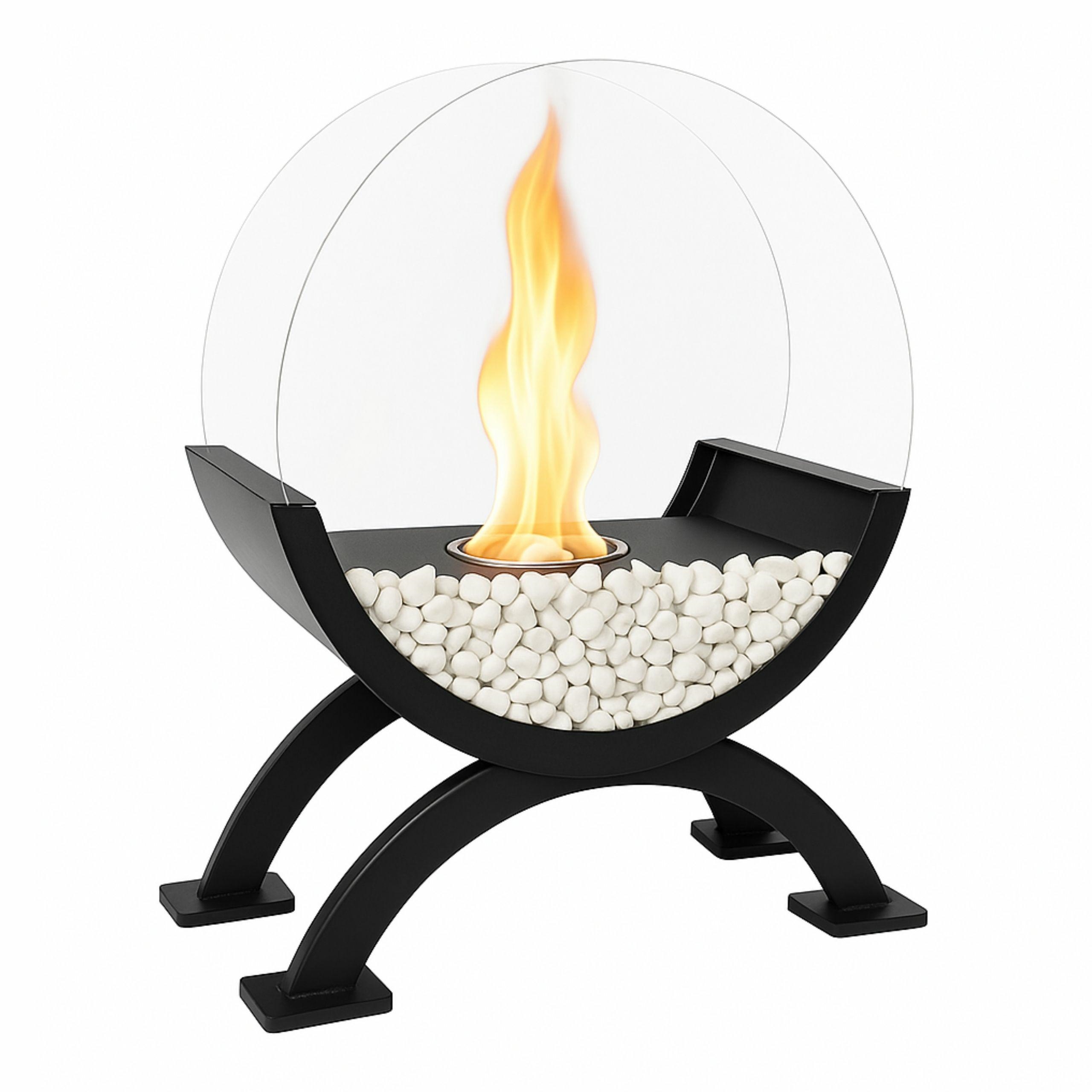 Nowoczesny, okrągły biokominek idealny do salonu, sypialni, biura czy na taras. Zapewnia czyste spalanie – bez dymu, bez zapachu i bez popiołu. Nie wymaga komina ani dodatkowej instalacji. W zestawie znajdują się dwa rodzaje dekoracyjnych kamyków (białe i czarne), które pozwolą dopasować wygląd kominka do aranżacji wnętrza.