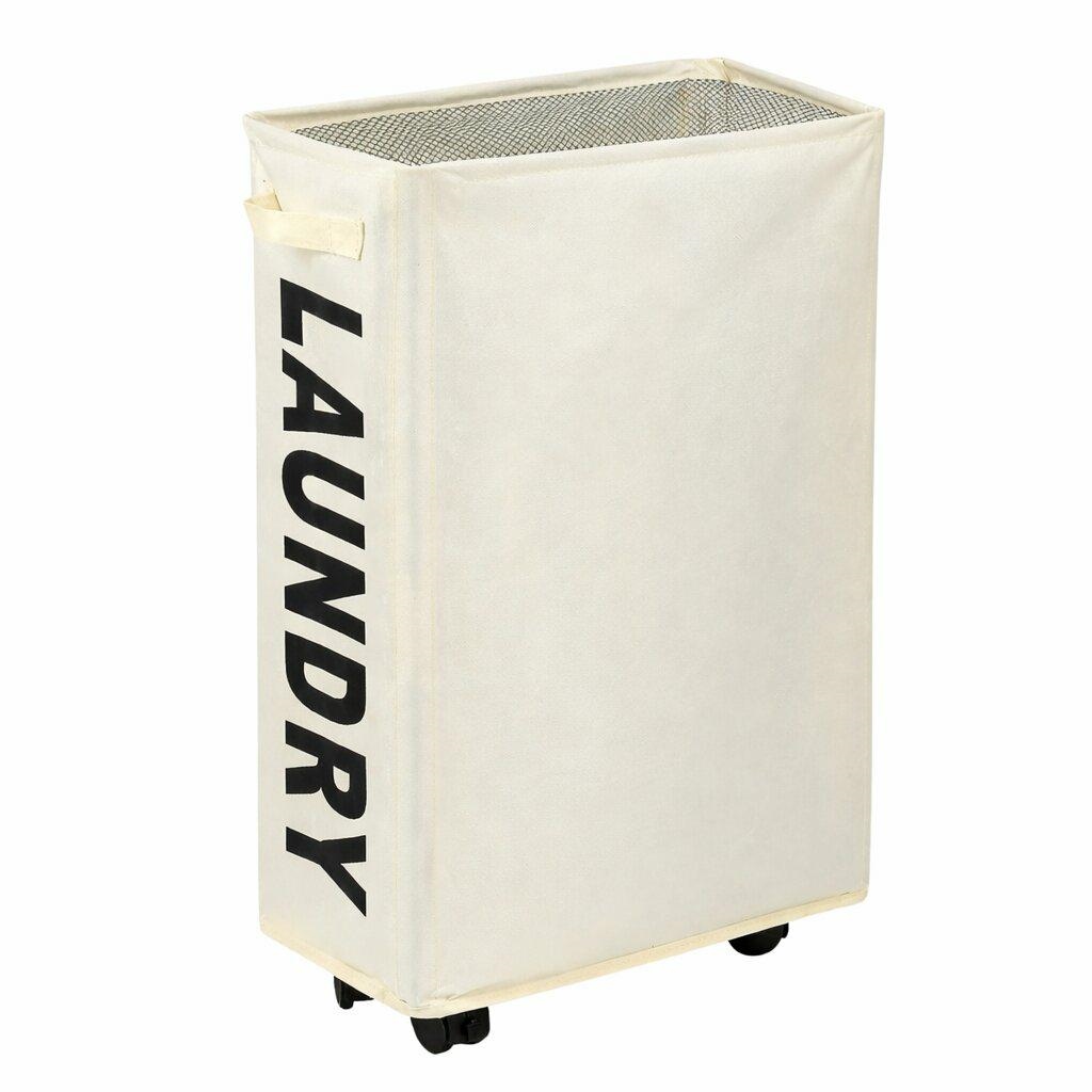 KOSZ NA PRANIE Z NAPISEM „LAUNDRY” – DUŻY 90 L, BEŻOWY, NA KOŁKACH