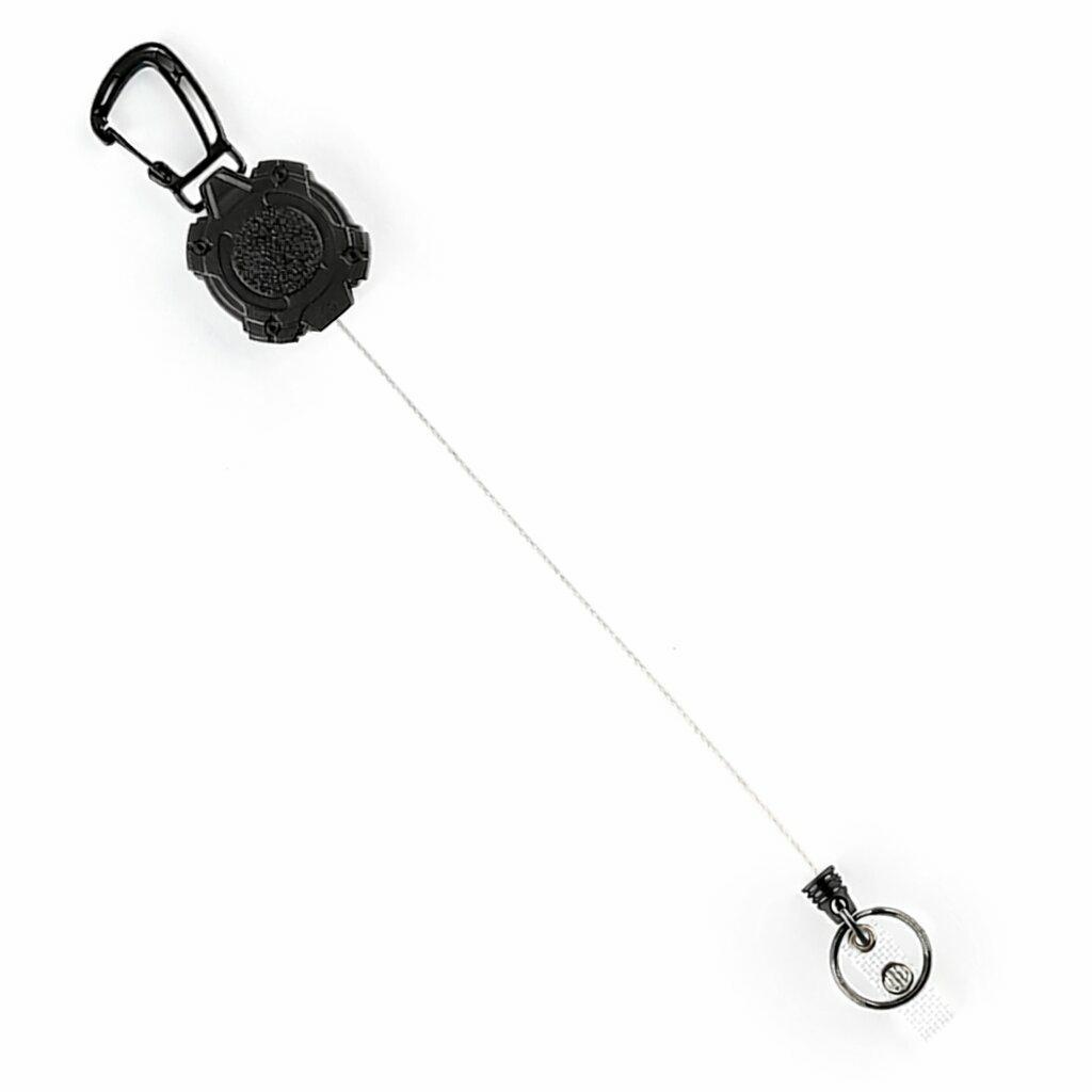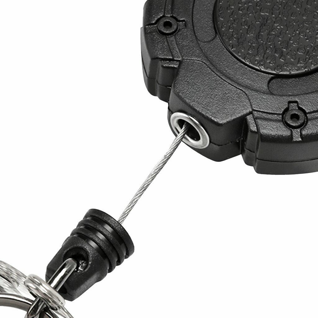Zestaw dwóch retraktorów z linką zwijaną ułatwia codzienne korzystanie z kluczy, identyfikatora lub karty dostępu bez konieczności ich odpinania. Mechanizm zwijany pozwala wysunąć linkę do pełnej długości, a następnie automatycznie ją zwinąć po zwolnieniu. Metalowy karabińczyk umożliwia przypięcie retraktora do paska, torby lub plecaka, a z drugiej strony znajduje się kółko do zamocowania kluczy lub uchwytu.
