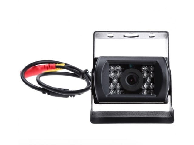 Produkt fabrycznie nowy w oryginalnym opakowaniu 18 diod IR zapewniających doskonała widoczność w nocy Kamera w metalowej obudowie z daszkiem zabezpieczającym Konstrukcja kamery wstrząso i wodoodporna Regulacja obiektywu w pionie , regulowana owiewka/daszek chroniący obiektyw Wyświetla linie pomocnicze Automatyczne włączanie w momencie wrzucenia biegu wstecznego Kamera zasilana na 12 - 24V Zestaw do samodzielnego montażu