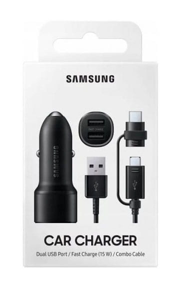 - Oryginalna szybka ładowarka samochodowa Samsung z dwoma portami USB
