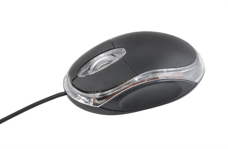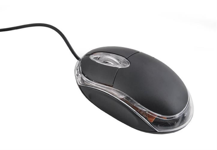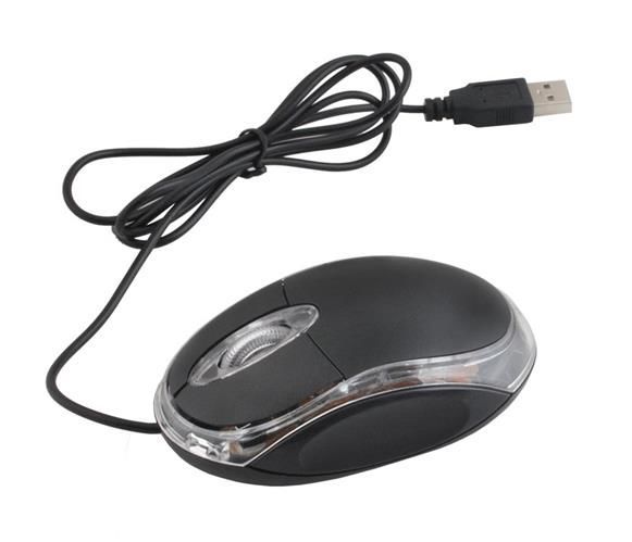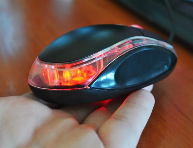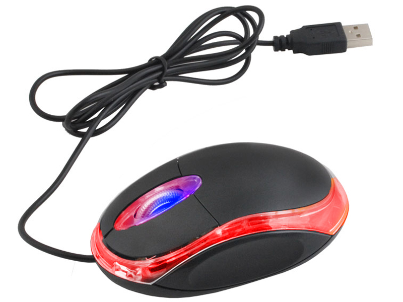 Myszka optyczna do komputera. Po podłączeniu do komputera świeci na czerwono co robi niesamowite wrażenie, szczególnie w nocy. Połączenie tworzywa czarnego i przezroczystego tworzy niesamowity efekt podczas świecenia myszy.