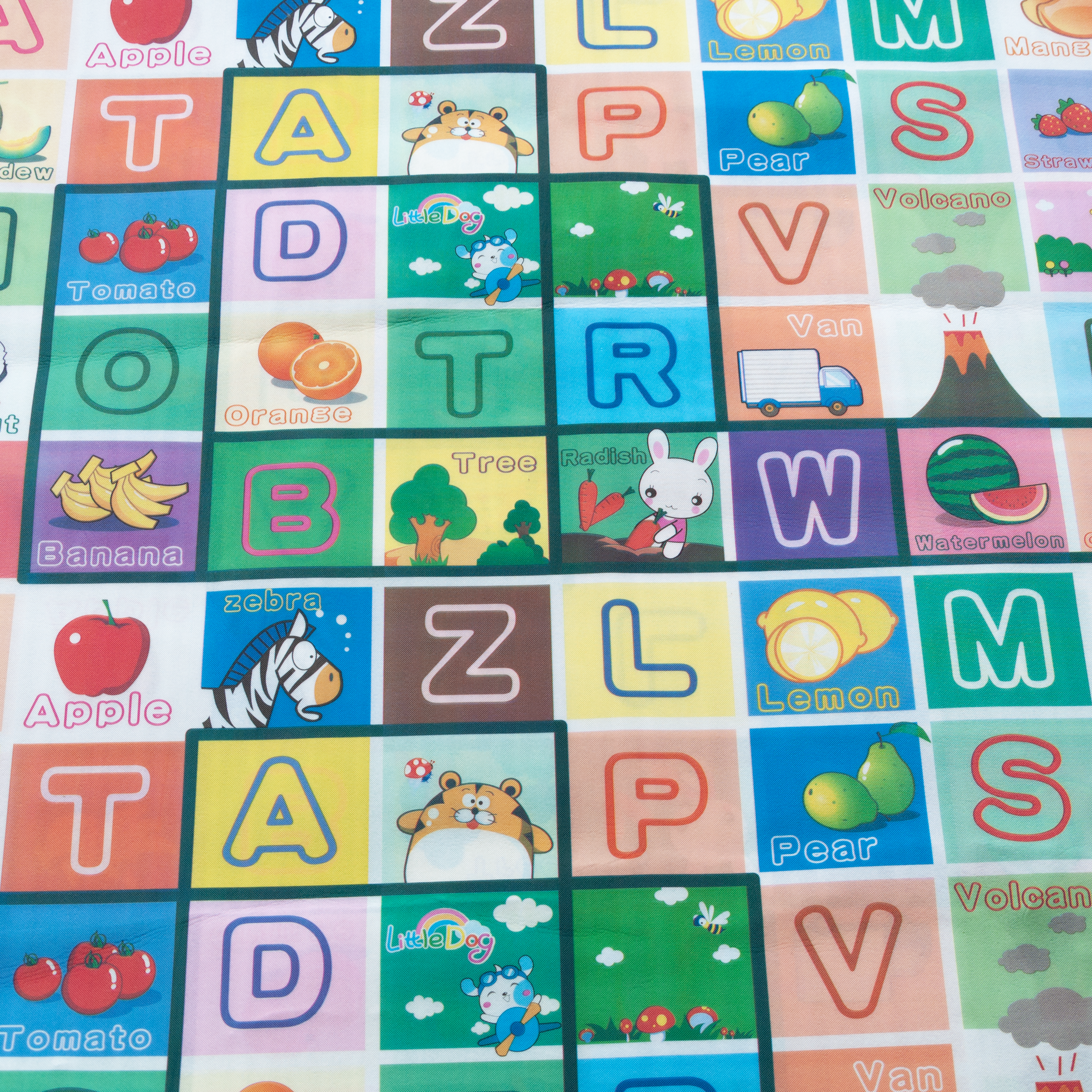 Dzięki dużym wymiarom (200x180 cm) na macie z łatwością zmieści się kilka osób wraz z zabawkami. Urozmaicone wzornictwo maty dostosowane jest do dzieci w różnym wieku.
