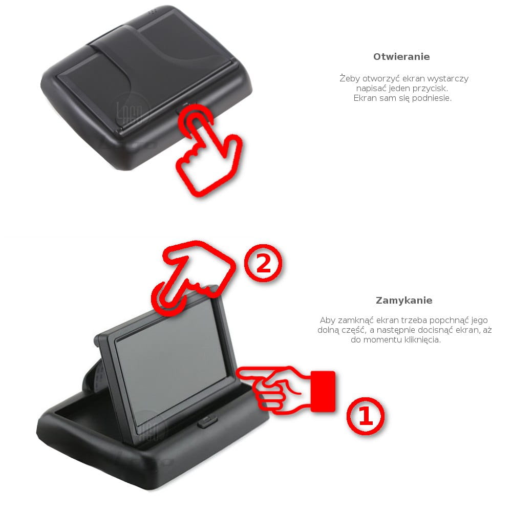 Monitor ekran LCD 4,3 składany kamera cofania 2 AV