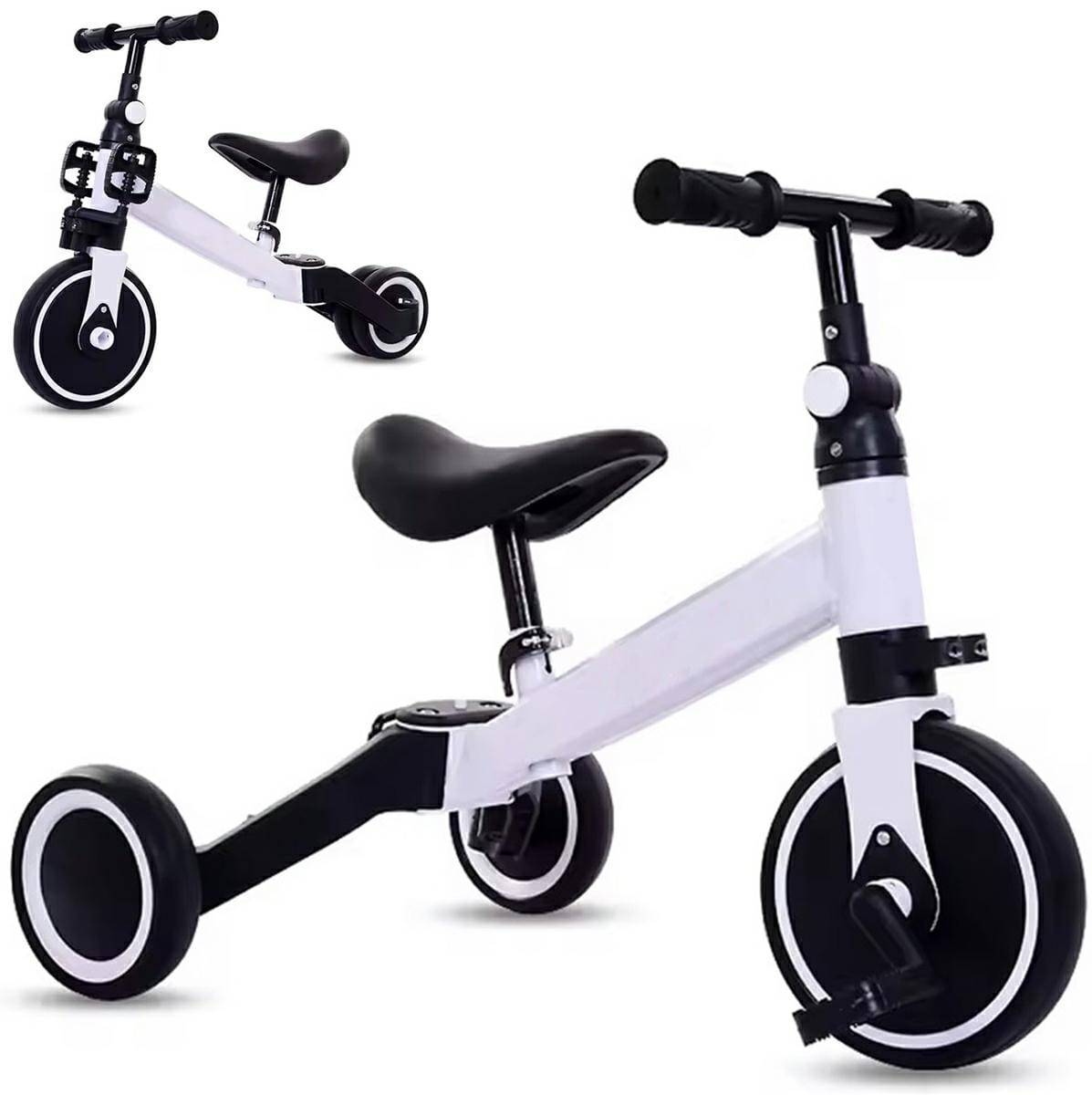 - Możliwość złożenia tylnych kółek oraz złożenia i rozłożenia pedałów pozwala łatwo przekształcić rowerek w jeździk.