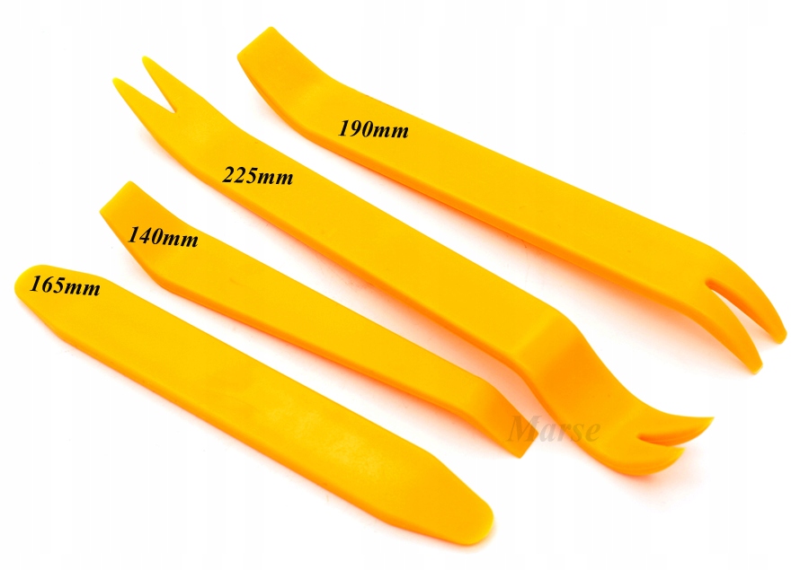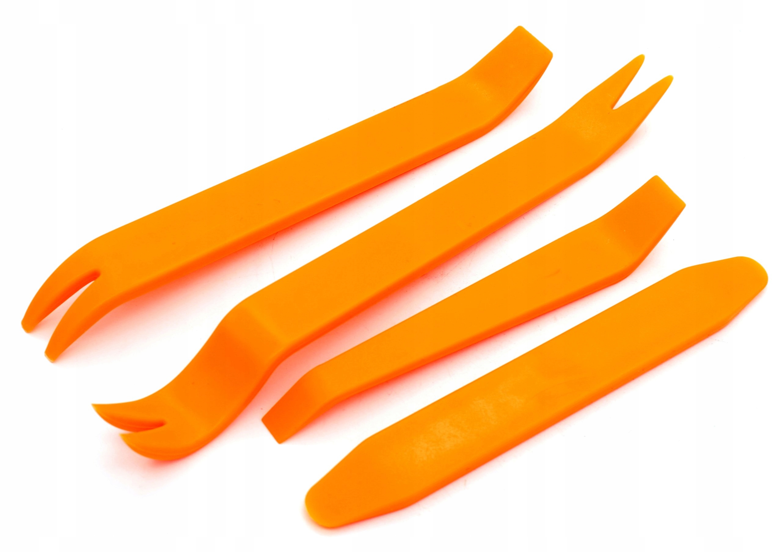 Zestaw 4 łyżek do rozbierania tapicerki samochodowej, idealne również do otwierania sprzętu elektronicznego na zatrzaski np. pilotów do TV itp. Absolutnie nie pozostawia śladów otwierania.