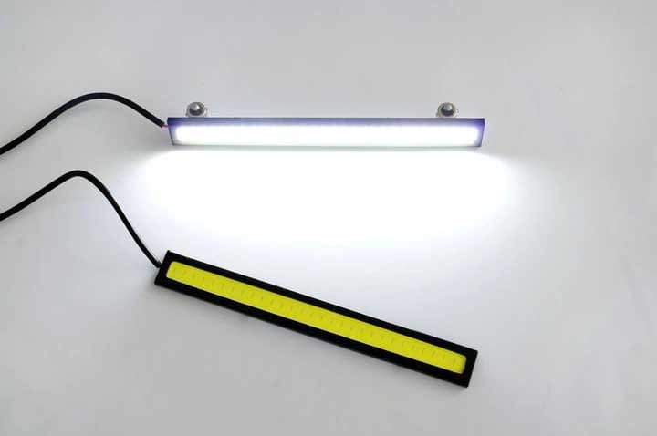 Światła LED DRL COB 2x 6W 17 cm Lampy wyposażone są w nowoczesne, bardzo mocne diody LED Chip-On-Board. Na jedną lampę przypada aż 48 chip