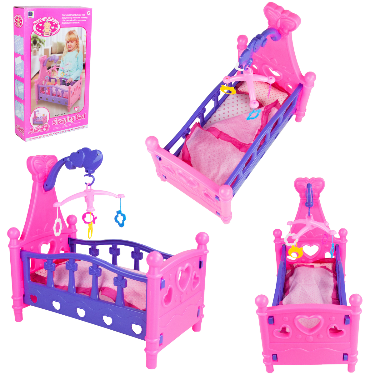 TG64204 ŁÓŻECZKO DLA LALEK Z KARUZELĄ KOŁDERKĄ I PODUSZKĄ