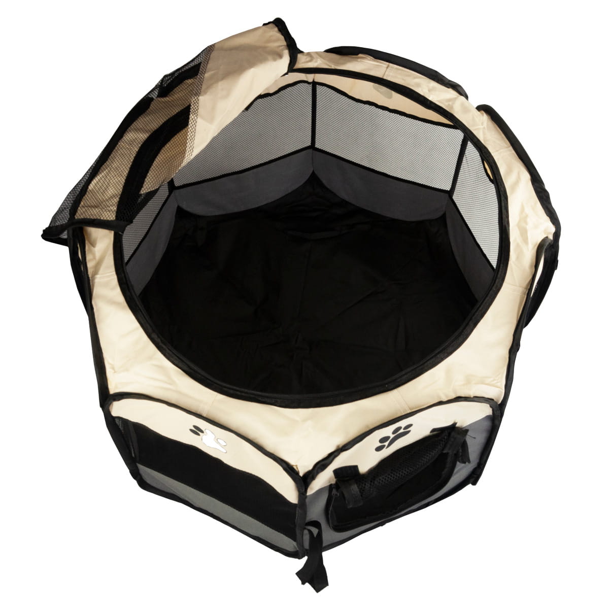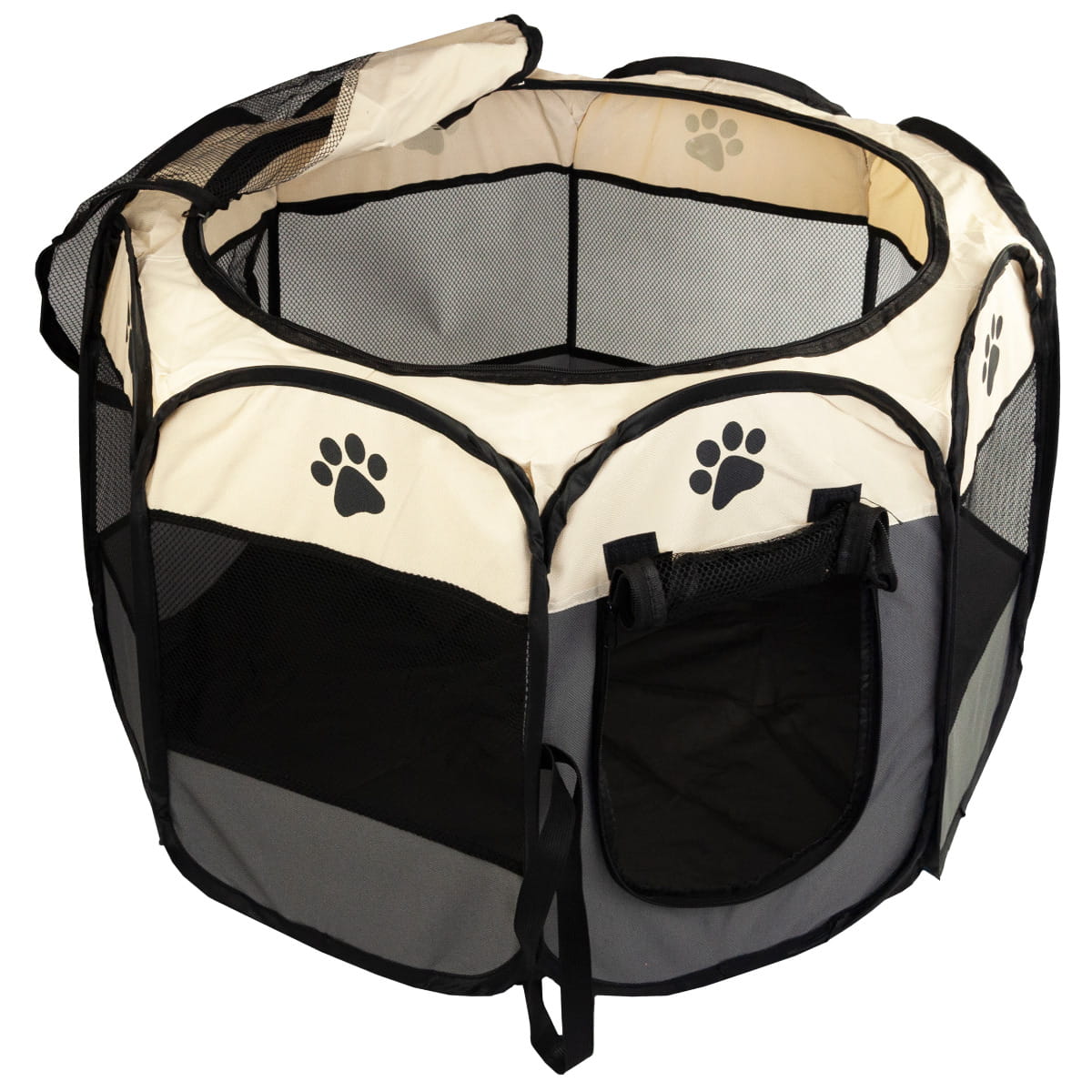 - Składany, tekstylny kojec wykonany na planie ośmiokąta przeznaczony dla psów, szczeniąt, kotów oraz niewielkich zwierząt.
