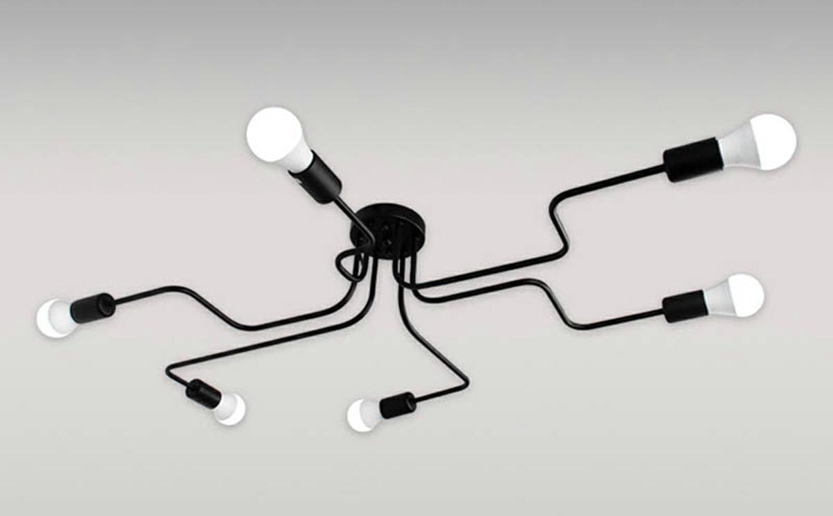 Wspaniały element dekoracyjny - żyrandol z aż 6 punktami świetlnymi! Wszystkie punkty światła zakończone są standardowym gwintem żarówkowym - E27. To doskonały pomysł na ozdobę eleganckich pomieszczeń w stylu loft bądź rozjaśnienie ciemnych zakamarków! Doskonale komponuje się zarówno z klasycznymi okrągłymi żarówkami E27 jak i wszelkimi ozdobnymi z tym samym gwintem!