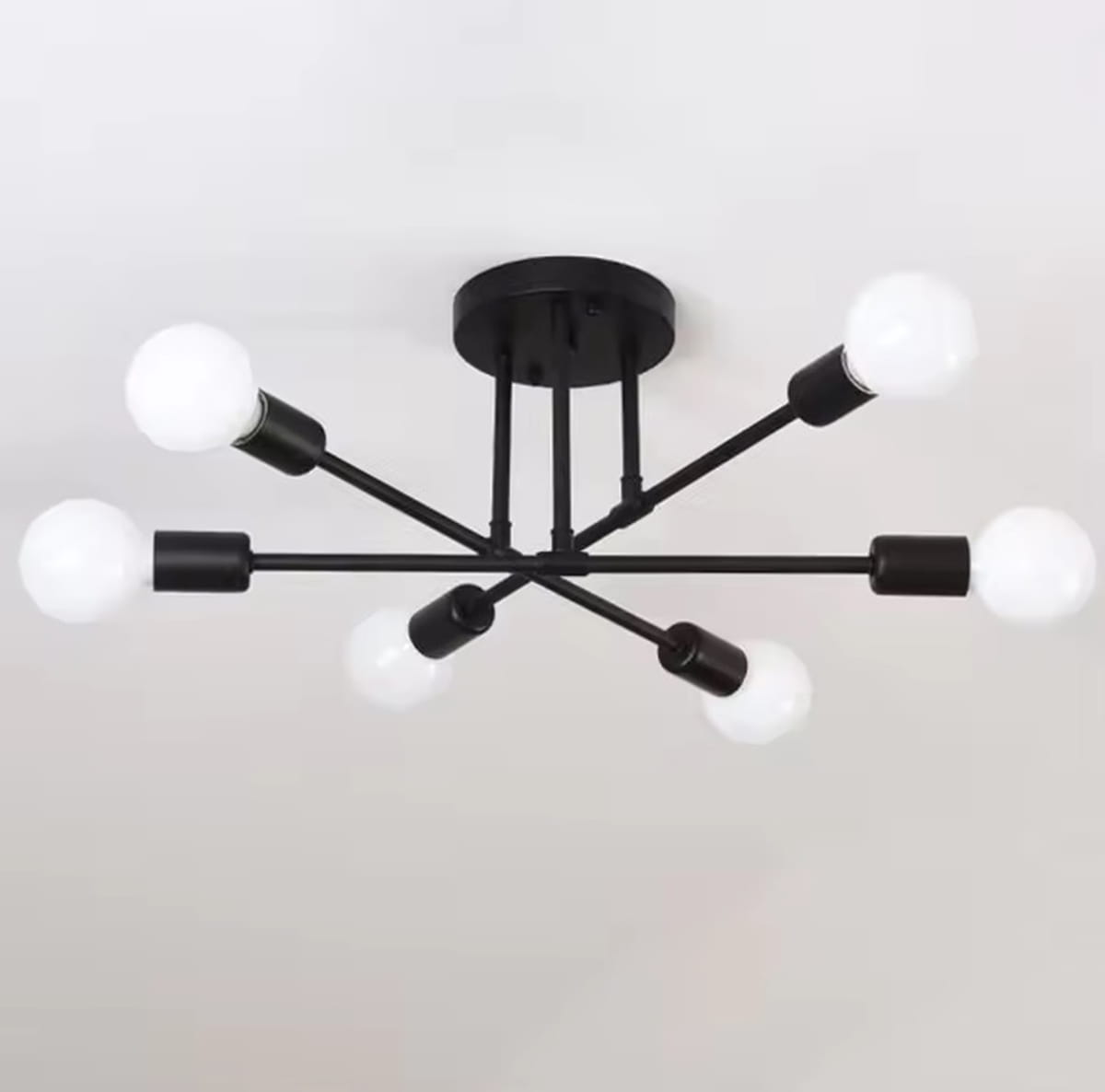 Wspaniały element dekoracyjny - żyrandol z aż 6 punktami świetlnymi. Wszystkie punkty światła zakończone są standardowym gwintem żarówkowym - E27. To doskonały pomysł na ozdobę eleganckich pomieszczeń w stylu loft bądź rozjaśnienie ciemnych zakamarków! Doskonale komponuje się zarówno z klasycznymi okrągłymi żarówkami E27 jak i wszelkimi ozdobnymi z tym samym gwintem.