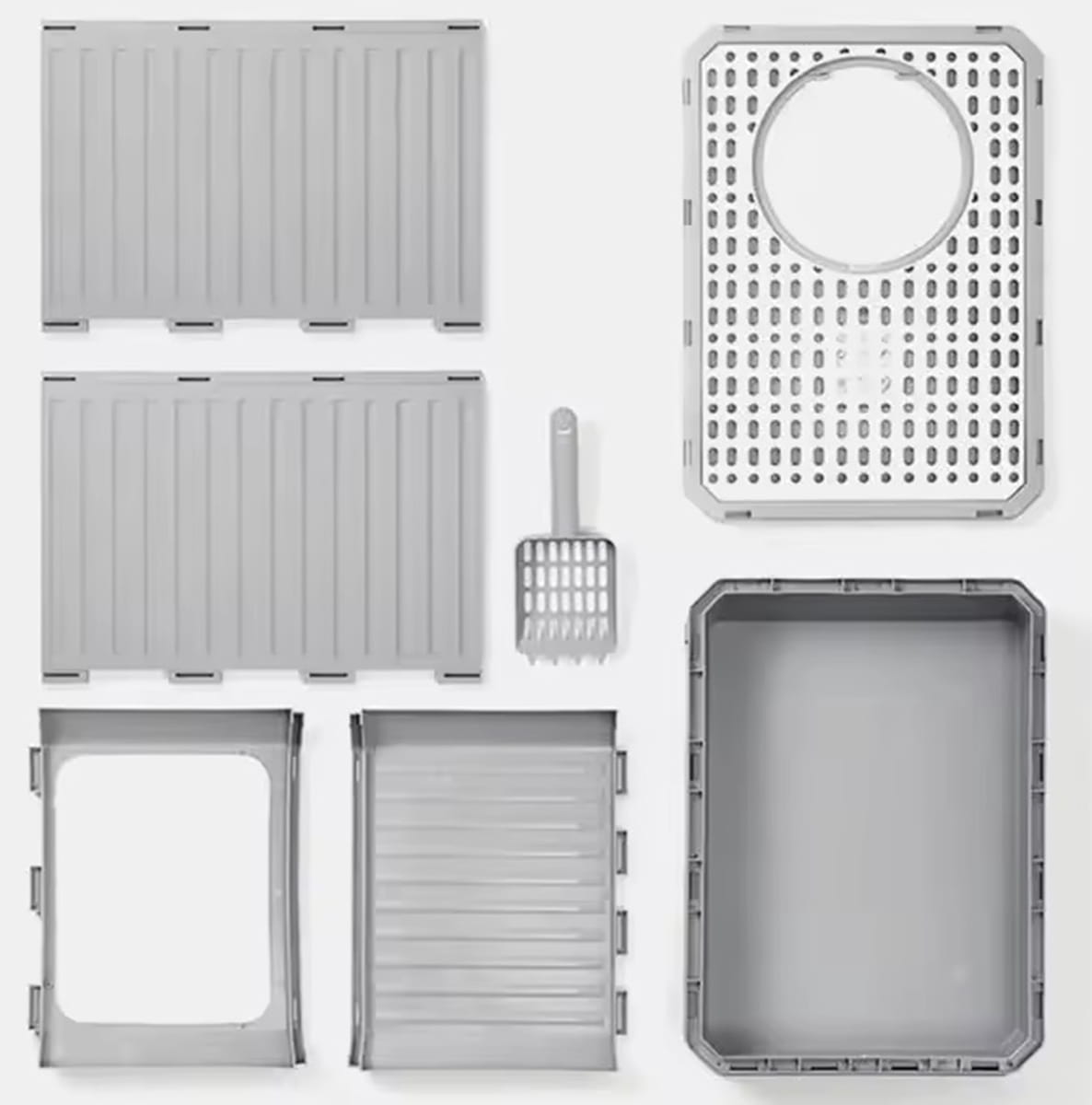Duża, kryta kuweta dla kota z wysuwaną szufladą. Doskonałe rozwiązanie dla posiadaczy kotów jak i samych czworonogów. Wysuwana (i całkowicie wyjmowalna) szuflada ułatwia sprzątanie i wymianę żwirku bez konieczności rozbierania całej kuwety. Duże drzwiczki ułatwiają dostanie się kota do wnętrza kuwety. Zamknięta konstrukcja doskonale chroni przed przykrymi zapachami oraz zapobiega rozsypywaniu się żwirku. W górnej części kuwety znajduje się specjalny, okrągły otwór służący np. do dosypania żwirku. Kuweta posiada możliwość szybkiego złożenia i rozłożenia, dzięki czemu łatwo ją przechowywać gdy nie jest nam potrzebna. W komplecie znajduje się również dedykowana łopatka do zbierania odchodów.