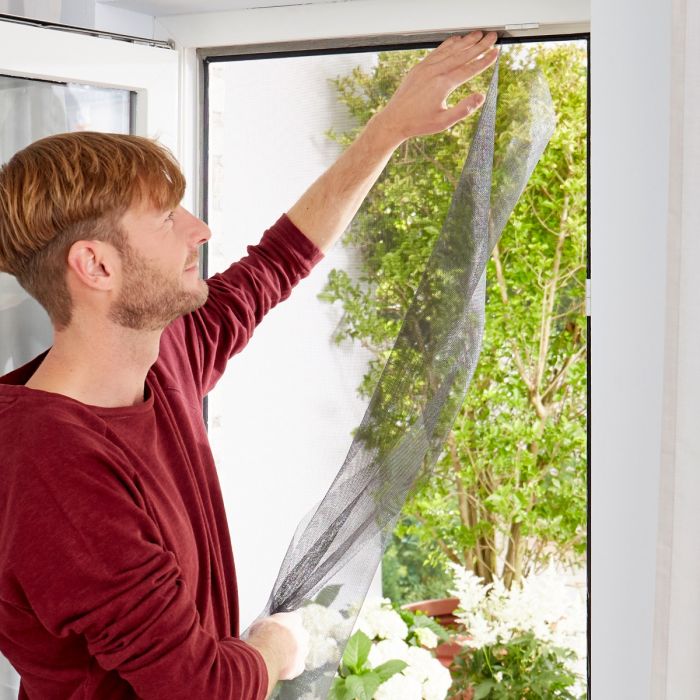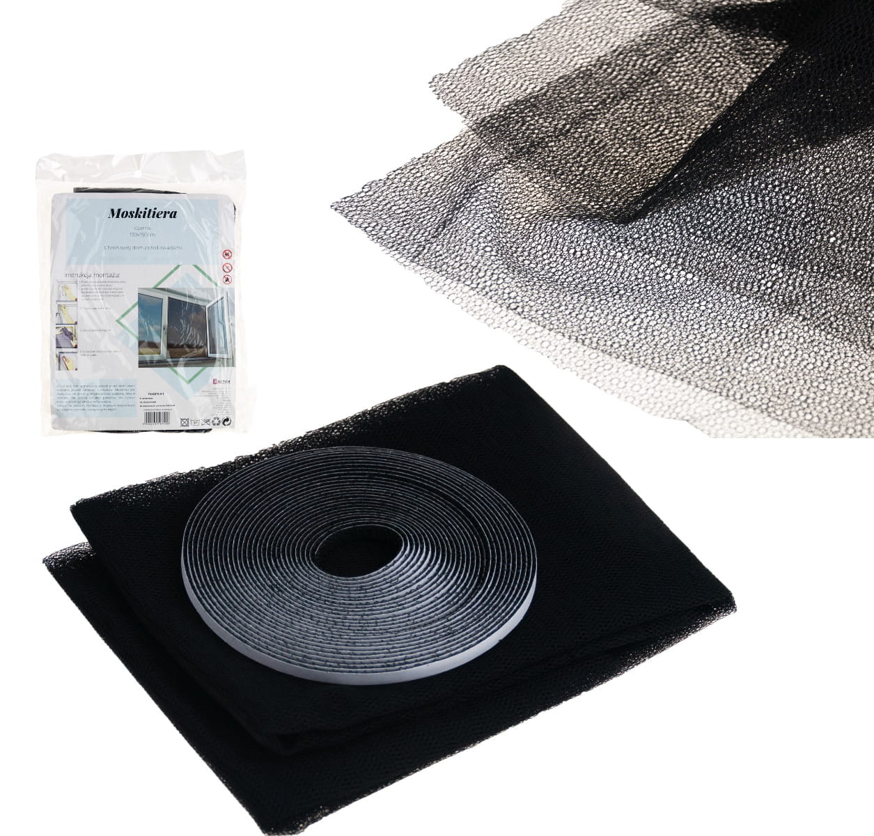 Czarna moskitiera, siatka na okno - 130 x 150 cm Cechy produktu: Doskonale chroni pomieszczenia przed muchami, komarami, ćmami i innymi drobnymi owadami. Wykonana z wytrzymałego poliestru – można ją prać, prasować i docinać do dowolnego wymiaru Do siatki dołączony jest mocny, samoprzylepny rzep w kolorze siatki. Jest bardzo praktyczna i wygodna w użytkowaniu Łatwa i prosta w montażu. Siatkę montujemy od wewnątrz. Specyfikacja: wymiar: 130 x 150 cm, materiał: poliester, kolor: czarny, rzep do przyklejenia siatki. Instrukcja montażu: Przed zamocowaniem moskitiery, umyj, odtłuść i osusz ramę okna. Moskitiera nie może być zamontowana po zewnętrznej stronie okna, ze względu na warunki pogodowe. Przyklej taśmę samoprzylepną do ramy okna. Pozostaw taśmę na ok. 2 godziny. Przymocuj siatkę do ramy okna. W razie potrzeby odetnij nadmiar siatki. W przypadku zabrudzenia siatkę można wyprać. Jeśli po demontażu siatki zostaną ślady, można je łatwo usunąć naftą kosmetyczną lub benzyną ekstrakcyjną.